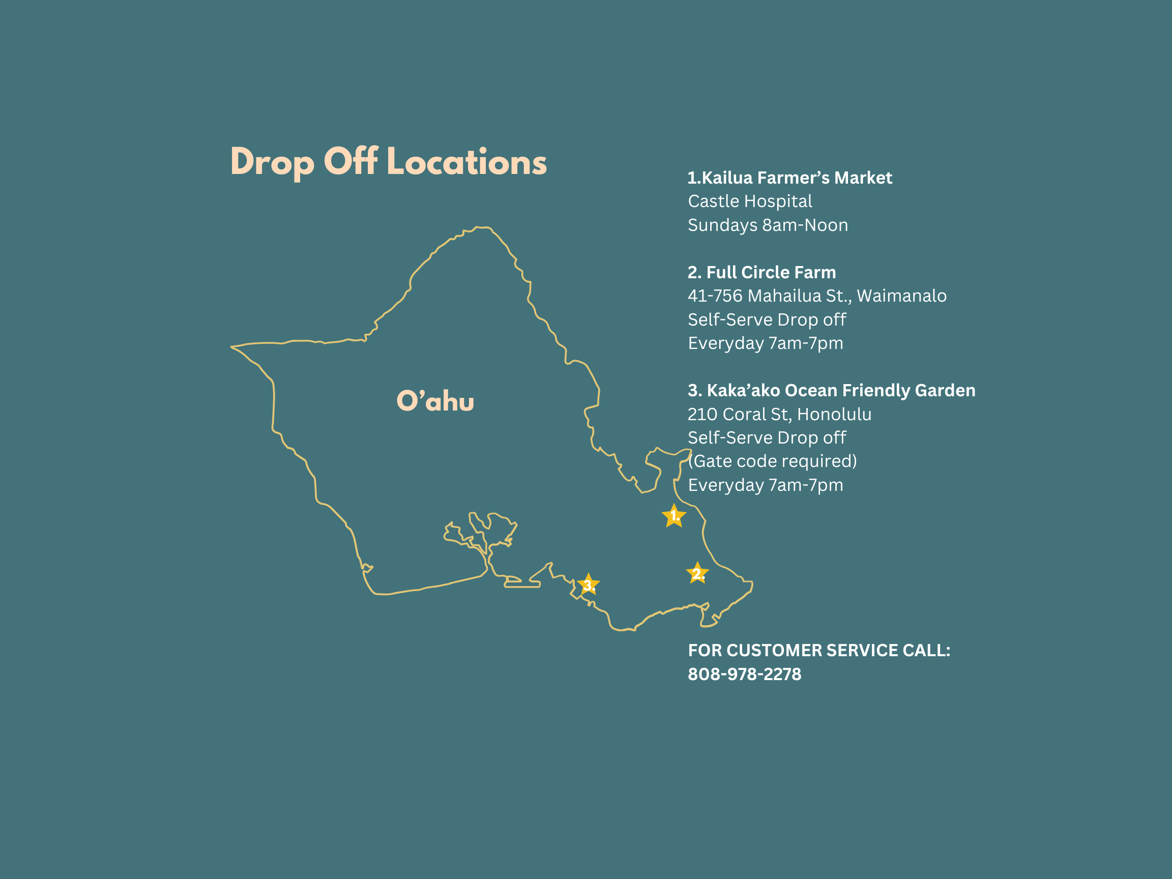 If you're signing up online, please contact us to schedule a time to get your first bucket and the gate codes for our self-serve drop-off locations. Contact Sean 808-978-2278